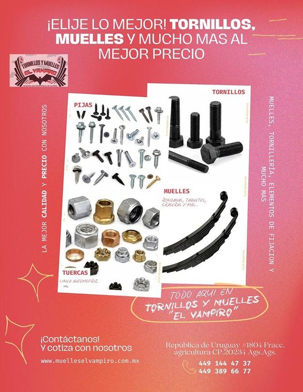 Tornillos y Muelles El Vampiro, ¡llámanos!